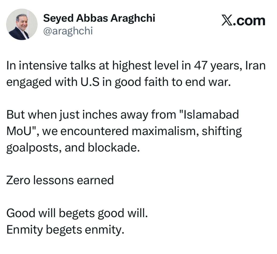 پیام سید عباس عراقچی وزیر امور خارجه جمهوری اسلامی ایران به نمایندگی از شورای عالی امنیت ملی